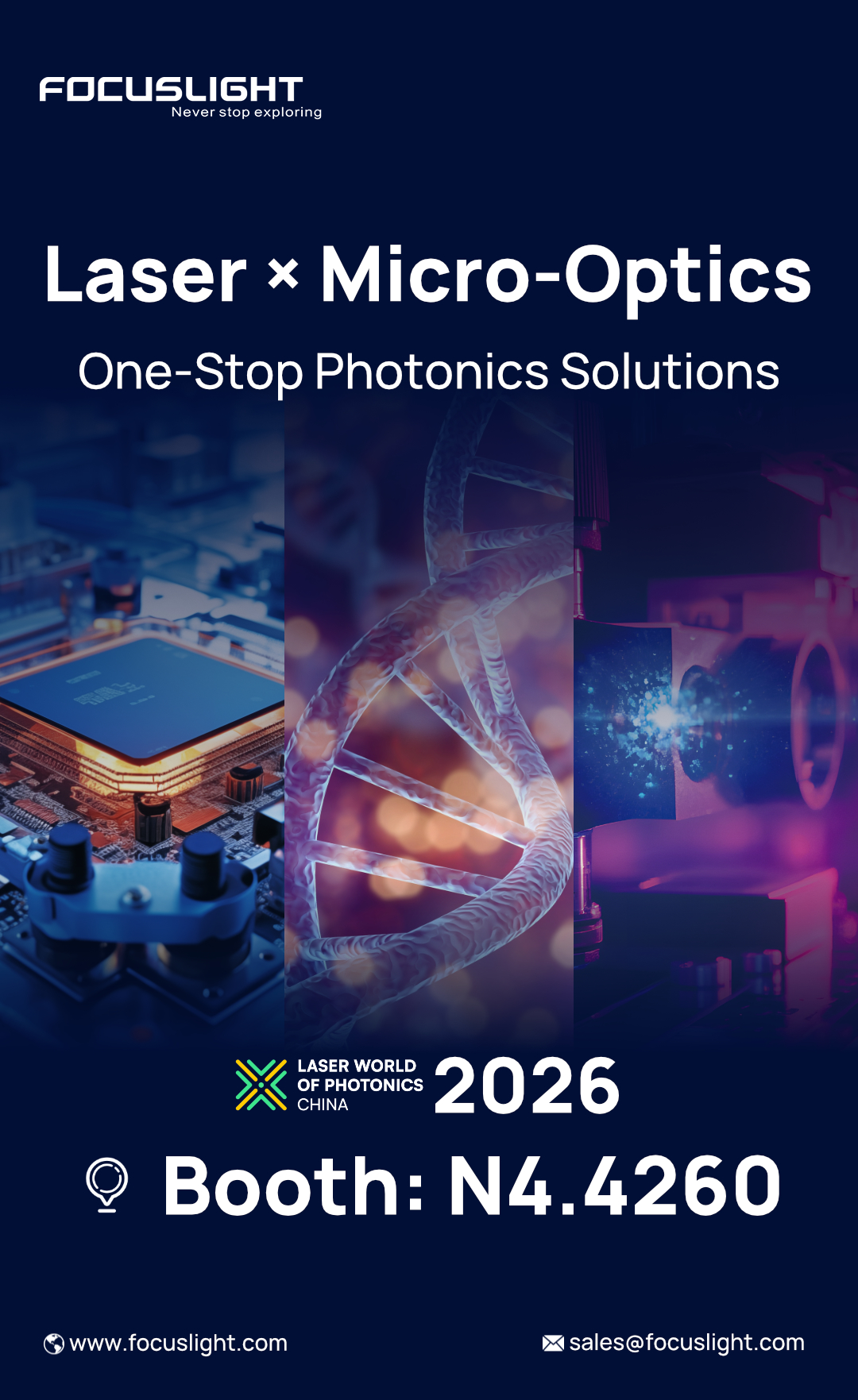 At this year’s event, Focuslight will be present in Hall N4 (Lasers & Optoelectronics) and Hall N5 (Integrated Optoelectronics & Optical Communications), featuring two booths: N4.4260 and N5.5532.