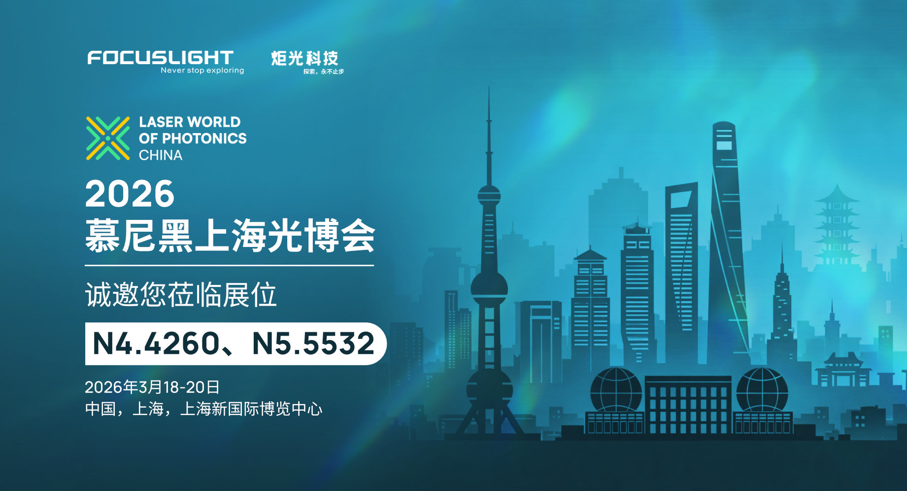3月18-20日,2026年慕尼黑上海光博会(LWOPC 2026)将在上海新国际博览中心举办。炬光科技将携旗下激光光源与原材料、激光光学等创新产品,及服务于光通信、消费电子等新兴领域的前沿应用解决方案参展。诚挚邀请您莅临位于激光器与光电子馆的展位N4.4260以及位于集成光电与光通信馆的展位N5.5532,与我们的专家团队共同探索光子学的未来机遇!